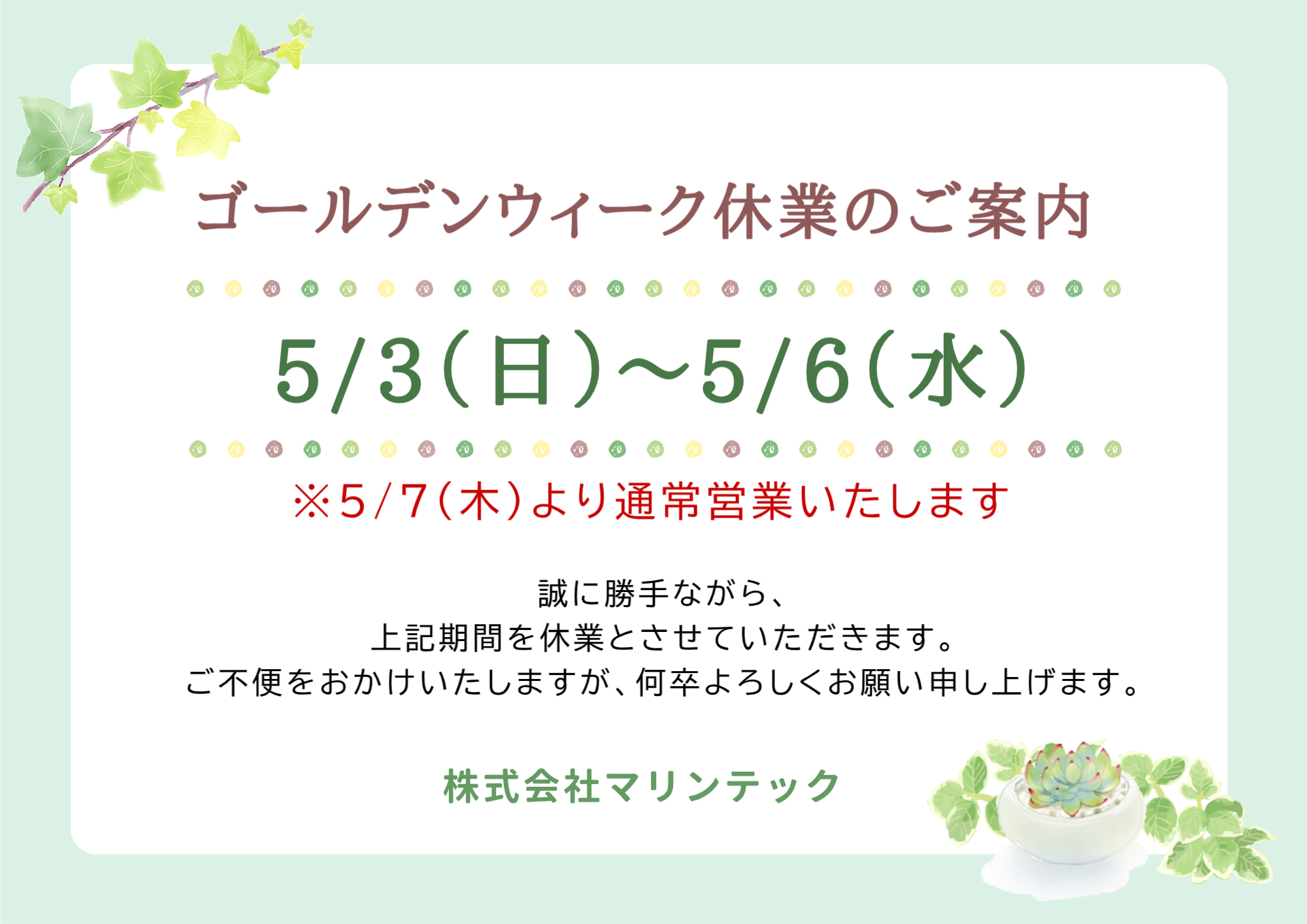 マリンテックからのお知らせ