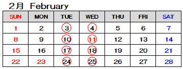 毎週火曜日・水曜日